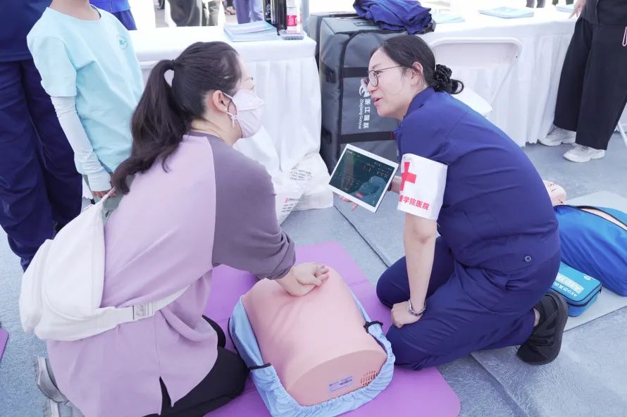 山岳和水域救援互动区域,不仅有高空索降带来的惊险刺激,岸上抛绳包、高精度破拆、医疗救护、心肺复苏等项目也让现场参与者直呼“过瘾”。