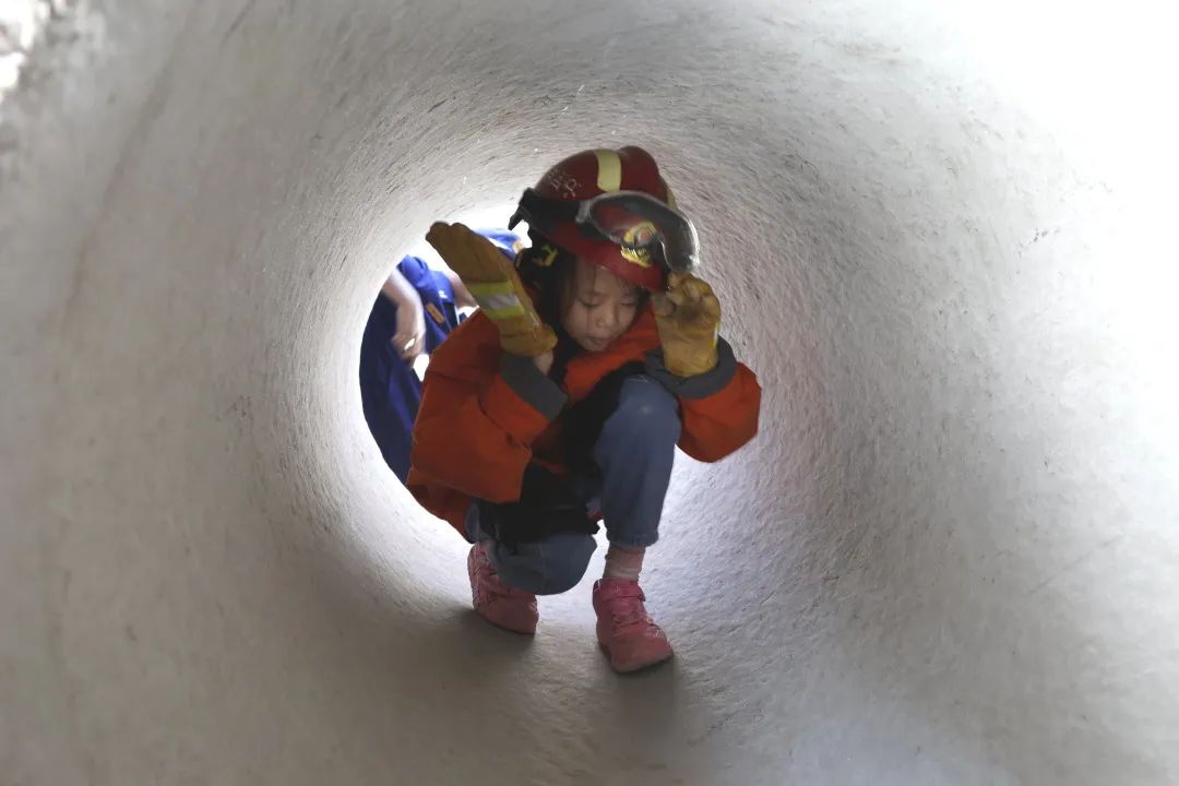 地震救援互动区域,前来体验的市民群众被穿戴的专业装具闷得汗流不止,瞬间袭来的失重感更是“雪上加霜”,加之空间狭小,逃生路线阻碍重重,在学习救援知识技能的同时,也亲身感受到救援人员的艰辛与不易。