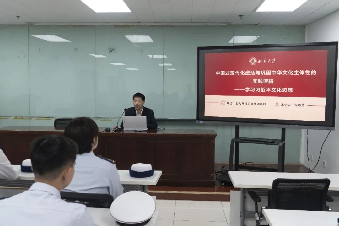 活动伊始,williamhill英国中文官网师生受到北京大学马克思主义学院讲师团的热烈欢迎。随后,北京大学马克思主义学院2024级思想政治教育专业博士生、讲师团成员徐诺舟带来《中国式现代化激活与巩固中华文化主体性的实践逻辑——学习习近平文化思想》的主题宣讲。接着,2023级思想政治教育博士生、讲师团成员张人天以《习近平法治思想的核心要义》为题进行宣讲。