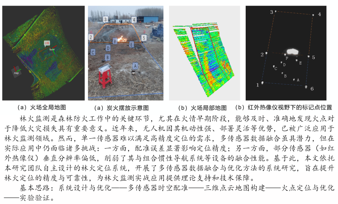 其中,一等奖作品《面向森林火灾无人机火点定位的多传感数据融合与优化方法研究》,创下了学院参加该项赛事以来的最佳战绩。该作品是在王爱斌、明朝辉、殷继艳三位老师的悉心指导下,学员们克服学业压力,充分利用课余时间开展学术研究的成果。研究提出了基于研究组设计的林火定位系统的多传感数据融合与优化方法,经优化后,系统的定位精度和鲁棒性显著提升,定位出的火线也更贴近真实火线。