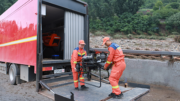 7月28日3时50分,学院无人机分队抵达北京市消防救援总队怀柔支队雁栖湖消防救援站,与怀柔支队前指人员会商研判,了解灾情信息后,立即奔赴灾情一线开展救援工作。