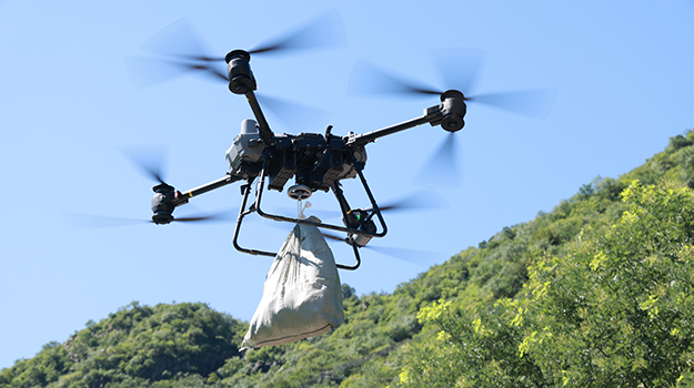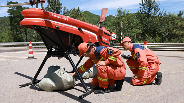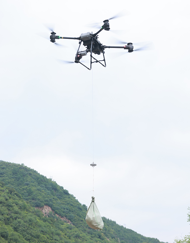 7月29日,琉璃庙镇青石岭村一处露营地6名游客被困,已持续2天没有食物补充,情况紧急。学院无人飞机分队利用大载重无人直升机载重大、续航长的优势,跨越3座高山成功向被困人员投送了食品、药品,为后续地面救援争取宝贵时间。