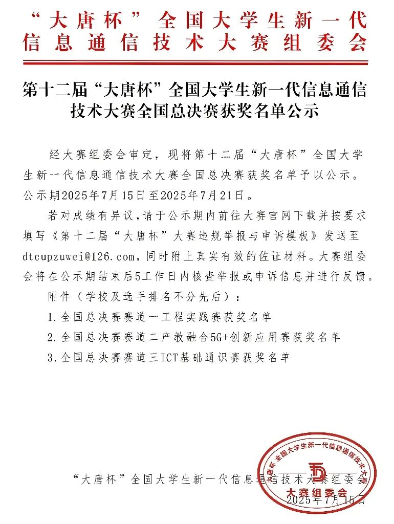 “大唐杯”全国大学生新一代信息通信技术大赛是一项全国性创新实践型竞赛。自2014年举办以来,大赛参赛人数累计突破10万,覆盖全国400余所高校,培养双师型教师数千名,并连续多年入选“全国普通高校大学生竞赛排行榜”竞赛项目。本次大赛设立省份选拔赛和全国总决赛两个赛程,共设置3个赛道,面向不同层次院校分别设置研究生、本科、高职、“一带一路”等不同组别。大赛以移动通信关键技术学习为基础,创建了产业认知、专业理论学习、虚拟仿真练习、真设备工程实践、工程应用创新、项目管理实践的人才培养体系,促进了教育链、人才链、产业链和创新链的有效连接。 2025年春季学期伊始,学院就在专业学员队内开展了广泛赛事宣传和选拔,14名学员组成7支参赛队伍参加第一阶段北京市比赛。在备赛的过程中,应急通信与信息工程系指导教师制定了科学严谨的备赛方案,采取“课堂内分层挖知识点+课堂外主攻实操技能”相结合的方法,将课堂教学和学科竞赛有机融合,邀请企业资深工程师进行仿真系统应用线上授课,强化了学员工程实践的综合能力。在5月18日举行的北京赛区比赛中,2022级飞行器控制与信息工程学员杨新博、邹敬轩斩获北京市一等奖,并晋级全国总决赛;2023级飞行器控制与信息工程专业学员李晨旻、王志钰获北京市三等奖。 7月11日至13日,赛道三全国总决赛在湖北武汉职业技术大学举行,williamhill英国中文官网由蔡骁老师带队参赛,杨新博和邹敬轩2名学员默契配合、沉着冷静、仔细思考,利用软件无线电搭建系统架构,对通信链路关键模块参数进行调整、观测系统性能、优化链路指标,完成选题指定的信号解调和分析,并根据系统结果完成答题、编写任务报告,最终凭借敢打敢拼的精神和过硬的专业技能,在近190所院校的250余参赛队伍中脱颖而出,将全国三等奖收入囊中。 此次参赛,武汉市消防救援支队给予了大力支持。赛后,参赛师生赴武汉市消防救援支队关山消防救援站进行参观见学,参观队站生活训练设施、主战装备体系,并与队站干部就无人机实战应用、队站级应急通信装备体系配备以及队站指挥员能力职责要求和管理经验等进行了座谈。 此次参赛是学院在教育部大学生竞赛A类赛事中又一新领域的突破,体现了学院在应用型人才培养、教育教学改革等方面的建设成效,在全国舞台上展现了新时代消防学子敢于拼搏、突破自我的精神风貌,以实际行动推动了本科教学工作合格评估准备与工程教育专业认证路径的实践探索。