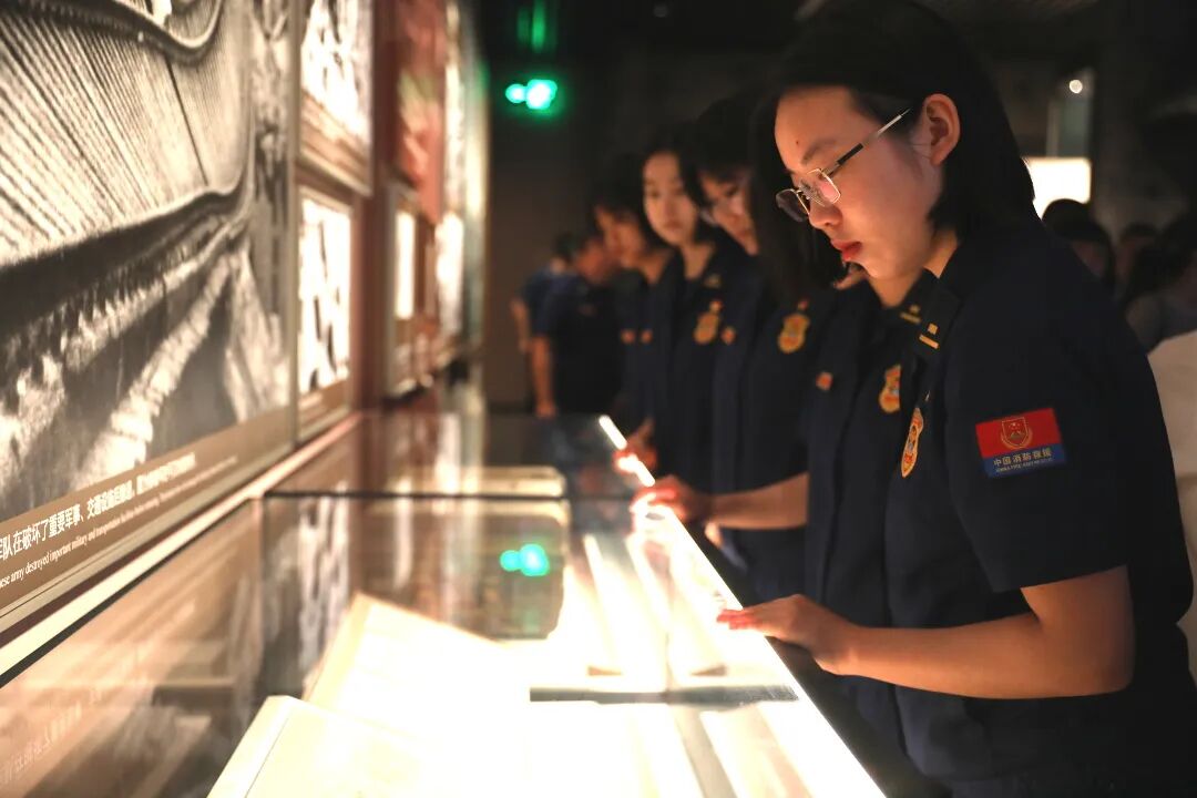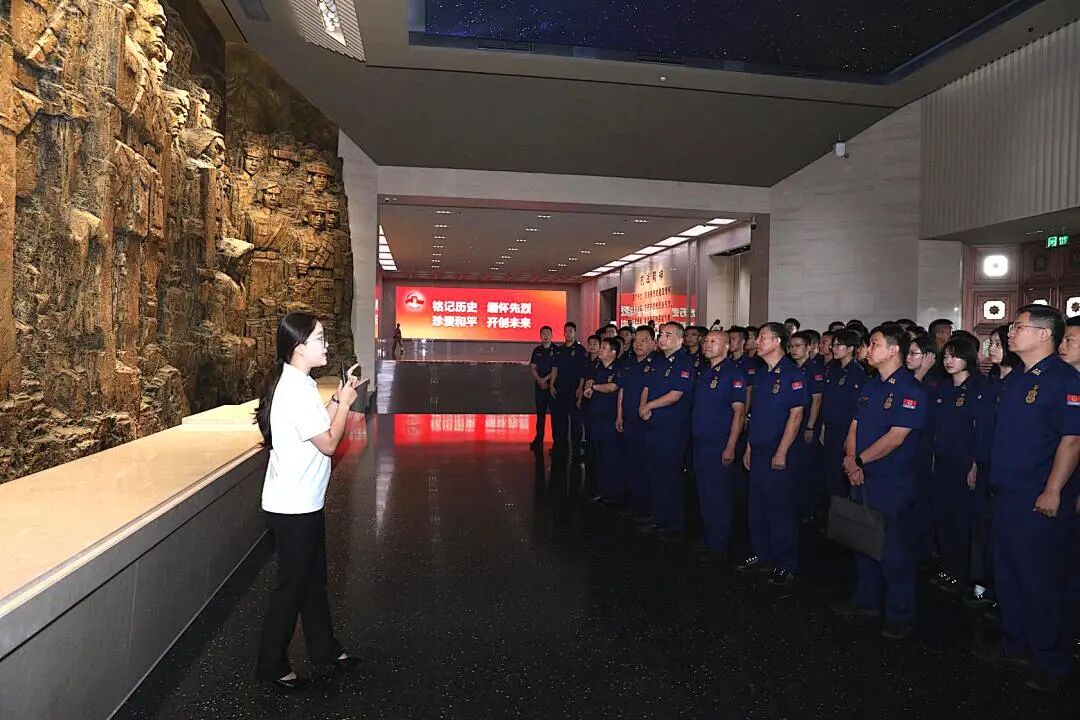在中国人民抗日战争纪念馆,大家参观了《为了民族解放与世界和平》主题展览。展览采取传统手段和现代科技相结合、实物展品和场景展示相结合、静态陈列和动态演绎相结合,全面展示中华儿女在中国共产党倡导的抗日民族统一战线旗帜下,为国家生存而战、为民族复兴而战、为人类正义而战的雄壮史诗。观展结束后,大家前往卢沟桥,触摸了历经沧桑的石狮,聆听了“卢沟晓月”背后的家国故事。大家纷纷表示,通过观展深切体悟了那段烽火岁月中民族觉醒、团结与抗争的伟大精神,进一步凝聚了铭记历史、缅怀先烈、珍爱和平、开创未来的信念,坚定了将个人理想融入民族伟大复兴、消防救援事业改革发展的决心。