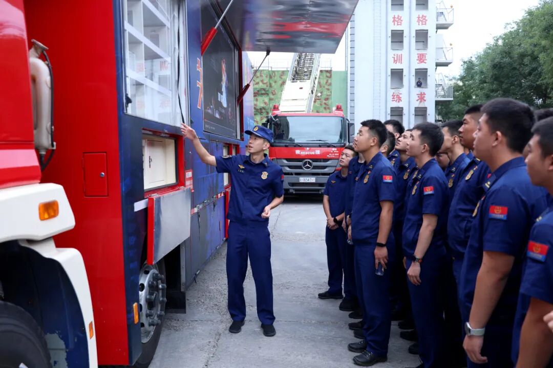 在北京市丰台区消防救援支队,师生代表实地观摩了基于“大数据”“一张图”理念打造的“实时化、数字化、智能化”指挥中心,直观了解了实时火情监测、救援力量动态调配、跨区域应急联动指令下达等内容;在马家堡消防救援站,现场观摩了新型器材装备和高层建筑灭火演练,详细了解了一线指战员战斗、训练和生活情况。期间,师生代表围绕“大数据在灾情预判中的应用”“多部门协同指挥的流程优化”等问题向一线指战员虚心请教、深入交流,进一步理解了现代消防救援“科技+协同”的核心逻辑,为一体推进“教、学、研、练、战”提供了新思路、拓展了新路径。