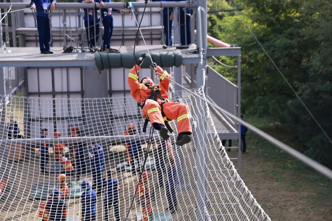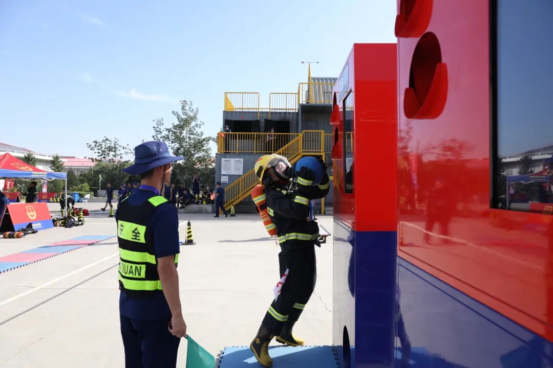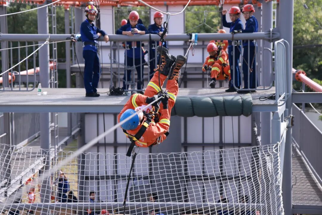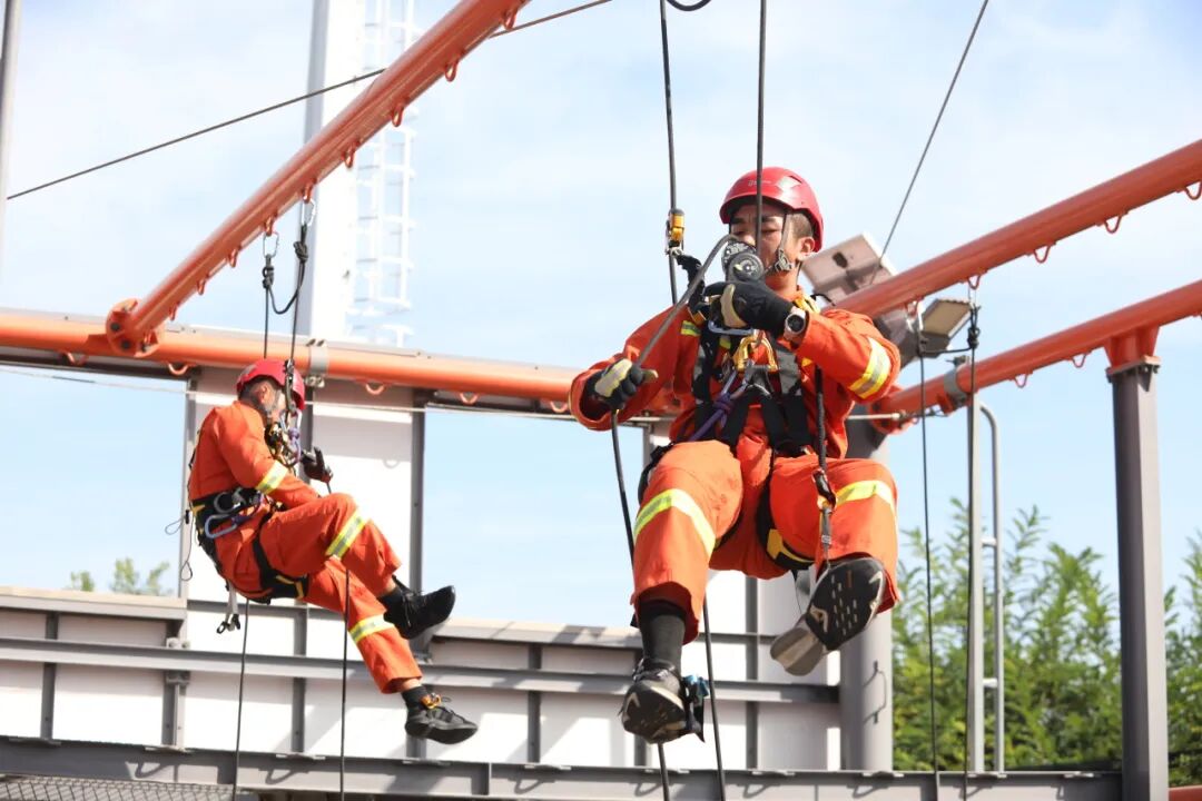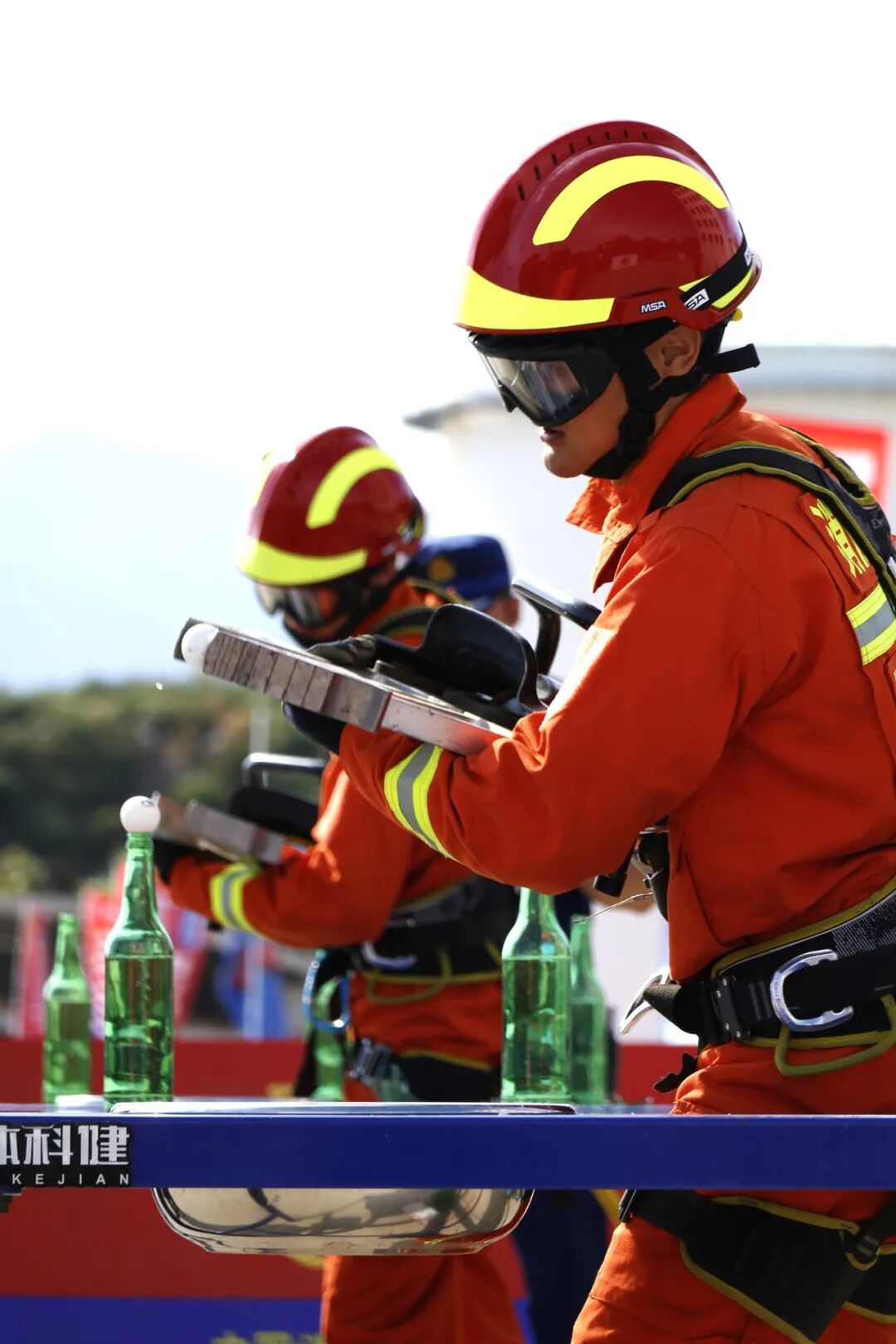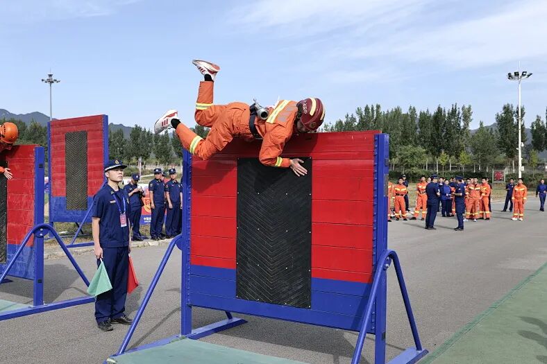 赛场上,参赛队员们化身“火焰蓝”勇士,用硬实力诠释逐梦消防、绽放青春的活力宣言,24个项目各有亮点,每一个动作都映射着救援现场的实战图景: