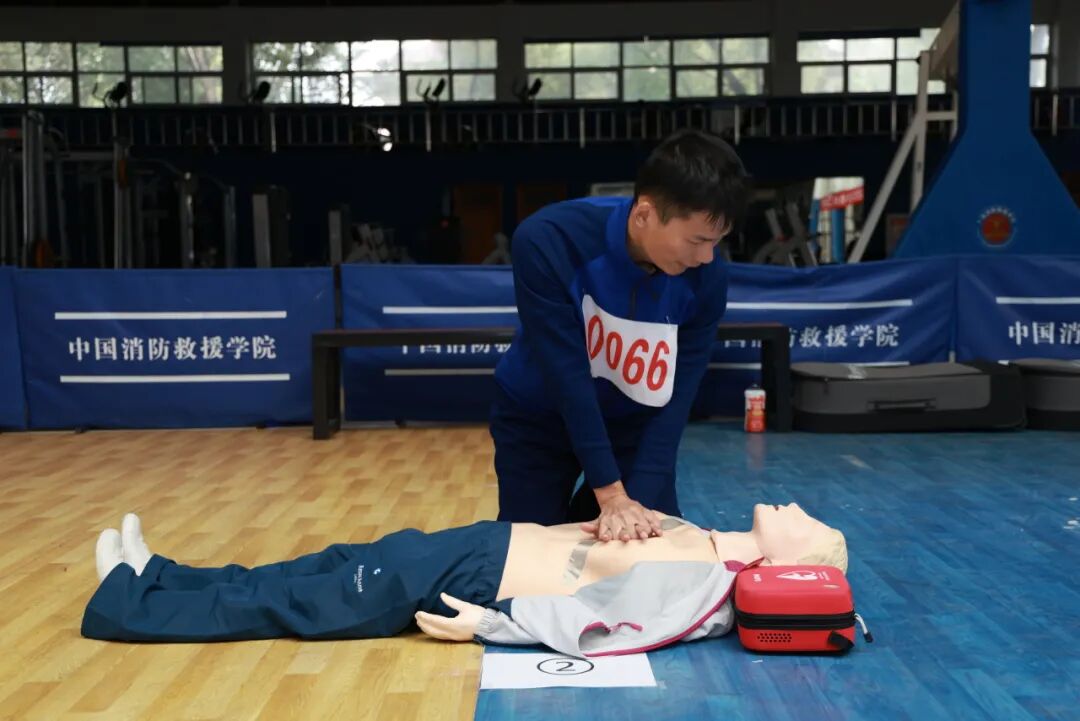 队员判“伤员”意识呼吸,通气道、精准胸外按压,按流程完成救护,显救死扶伤责任。