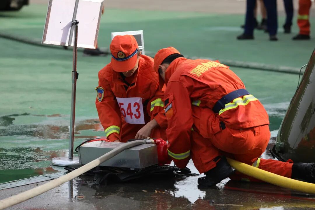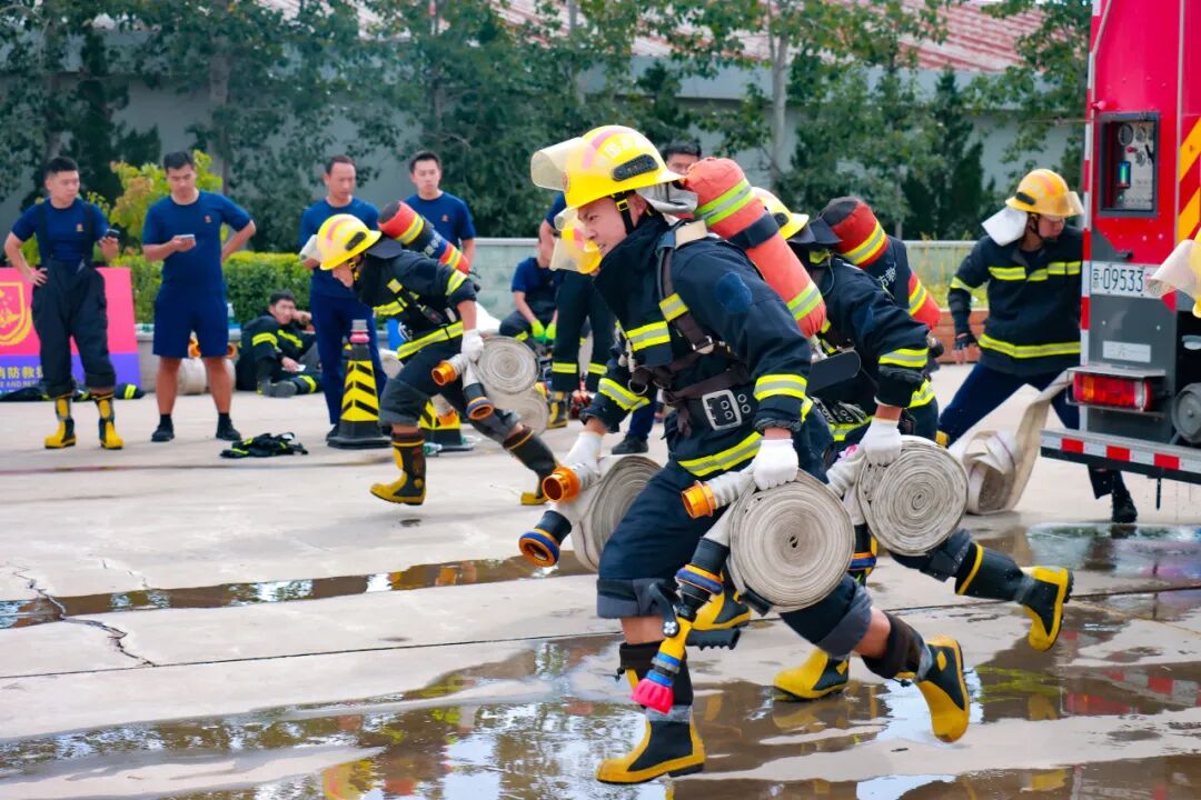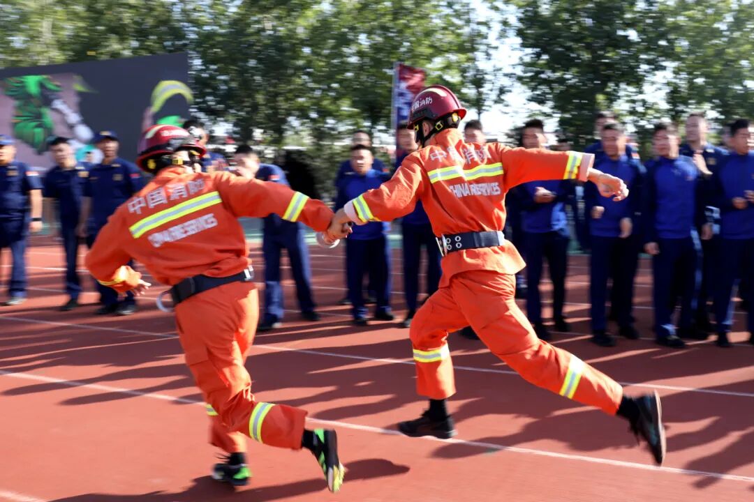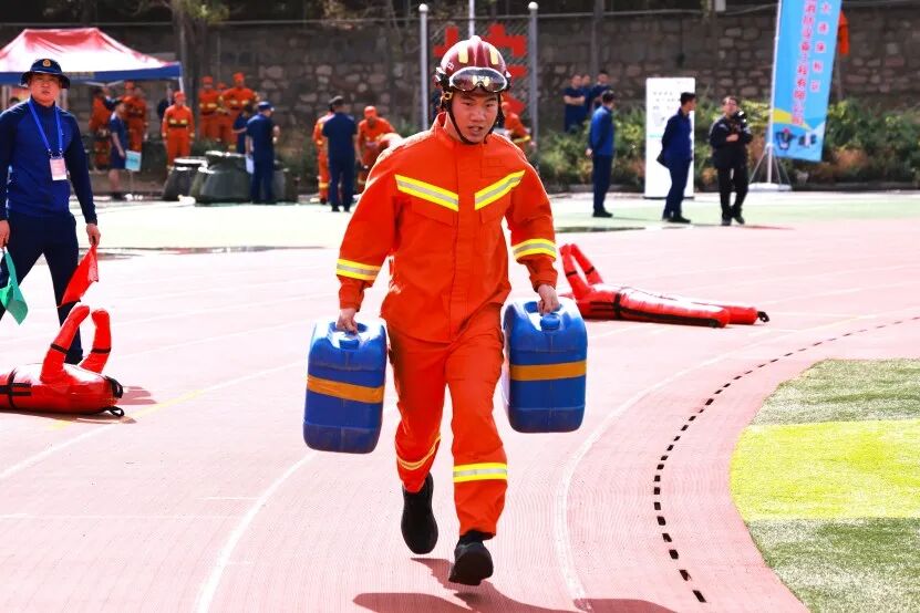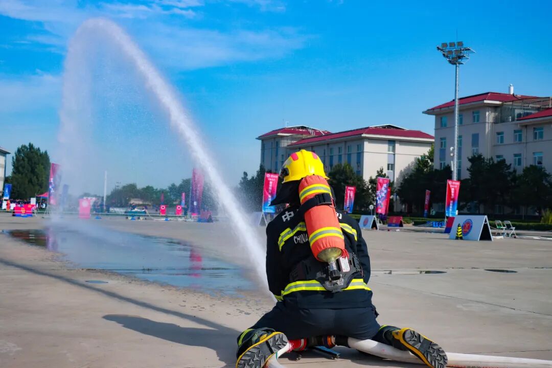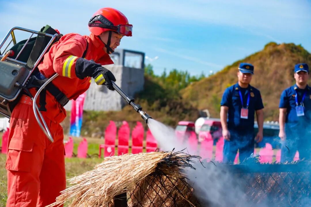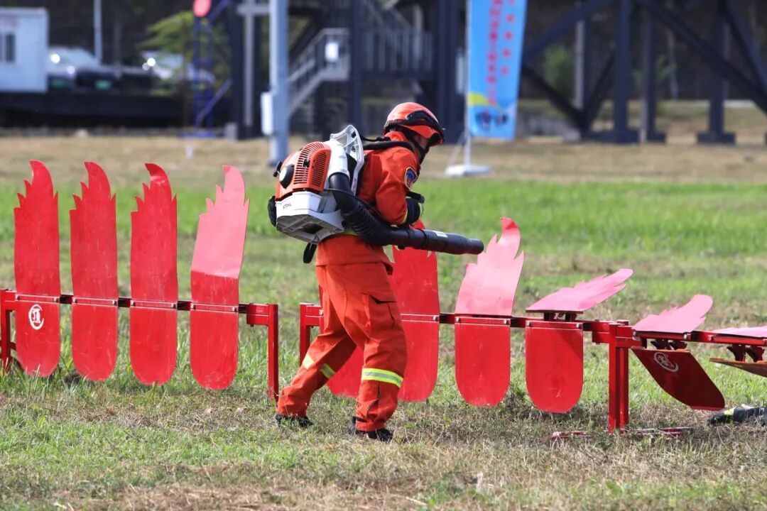 比赛激烈开赛,水龙带铺设、风力灭火机操作等项目轮番上演,选手点烧时精准控火、猛投灭火弹、灵活操水枪,全面展示了专业技能与团队协作能力。