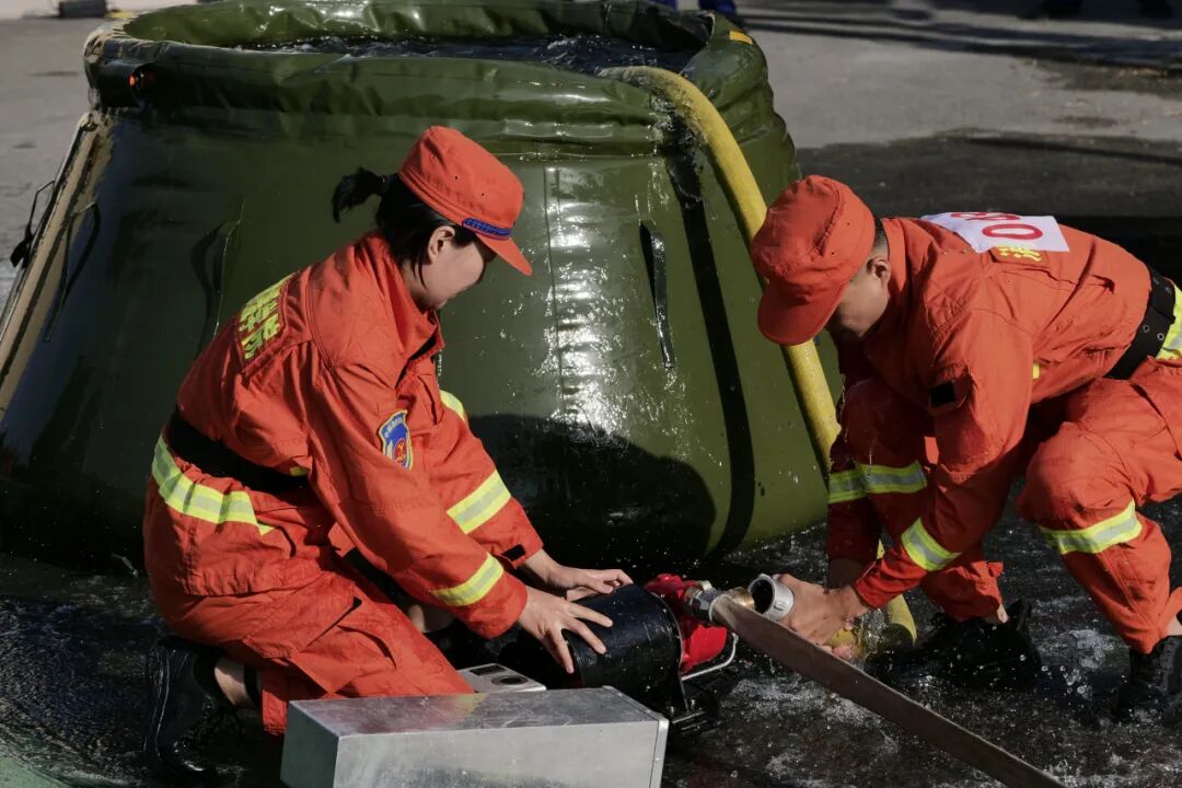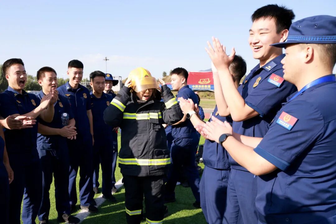 女队员们更是巾帼不让须眉,抗梯、越障,破拆、救助,以坚定勇敢的姿态,绽放飒爽自信的风采,闪耀着“逐梦火焰蓝”的炽热光芒。
