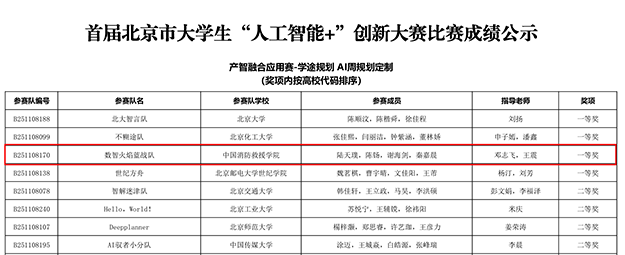 首届北京市大学生“人工智能+”创新大赛秉承“数据驱动、深度融合、智能引领”的办赛宗旨,以“创享青春、智启未来”为主题。大赛自启动以来,吸引了首都高校广泛关注与积极参与,来自北京55所高校的222支优秀本科生队伍、921名选手成功挺进市级决赛,全面展示从基础算法、工程实现到跨界创新的综合能力。为备战此次赛事,学院通过多轮严格遴选,择优推选4组优秀团队参加,指导老师围绕项目方案设计及答辩表达等环节开展系统指导,夯实学生实战基础。