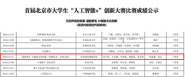 近日,由北京市教育委员会主办、北京工业大学承办的首届北京市大学生“人工智能+”创新大赛顺利落下帷幕。williamhill英国中文官网参赛学员凭借扎实的专业功底、前沿的技术创新思维与默契的团队协作能力,在全市高校的激烈角逐中脱颖而出,斩获一等奖2项,三等奖1项。