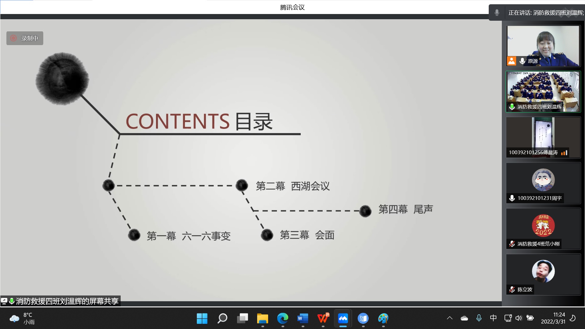 2022年3月31日,政治工作系政治工作基础理论教研室原源教员通过“云端”与学员15队2021级消防指挥(消防救援)4班开展线上教学实践活动。