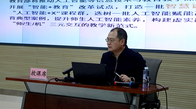 为推动数字化背景下的教育教学改革,加速人工智能技术在教育教学中的广泛应用,更好地提高教师使用人工智能赋能教育教学的能力,学院于12月5日举办人工智能赋能教育教学专题培训。学院邀请北京邮电大学教务处副处长赵慧、北京理工大学教授赵鲁涛、中央民族大学教授林旺三位专家进行经验交流,培训由学院副院长贾靖主持,部系领导、教研室主任级无课教师与会聆听。