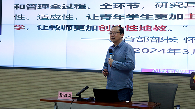 授课结束后,贾靖副院长指出,随着技术的快速发展,人工智能赋能教育教学改革已经成为高等教育发展的新趋势,要紧跟时代与技术发展,利用人工智能等技术手段,构建智慧化的教学环境,提供个性化的学习资源和路径推荐,打造高效、自适应的学习新范式。他鼓励参训教师们从专业发展、课程建设和提高人才培养成效的高度出发,敢于创新、发挥前瞻思维,在教育数字化转型的大背景下,充分借助人工智能技术促成传统师生“二元结构”向智能时代“人机交互”模式过渡。他强调,教师要不断提高自己的智能化教学水平,成为人工智能与教育教学深度融合的学习者和实践者,将讲座中的理论知识和实践应用到自己的教学工作中,将数智化教学工具有效融入日常教学之中,实现传统教学模式的变革与创新,探索出一条体现学院特色的人工智能与教育教学融合发展的道路,以提高教学质量,更好地服务于学生,持续推动学院本科教学质量的全面提升。