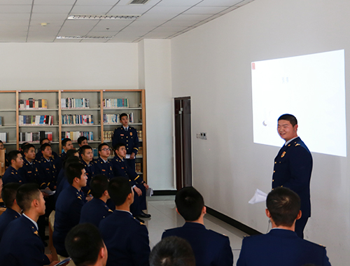 在大家热烈的掌声中,来自学员七队的主讲人王启尧同学正式开始了“文学交流会”。他那活泼的语调,细腻的情感感染着台下的每一位学员,镌刻初心,品尝文学底蕴。大家在他的带领下,共同回顾了中国汉字的发展史,感叹造字的精美,沉浸在中华历史的沧海桑田里。汉字无声的记载着一个国家的兴衰、汉字默默的诉说着一个民族的悲欢离合,回顾汉字就是回顾历史、尊重汉字就是尊重历史。随后,在婉转悠扬的音乐声伴随下,来自七个学员队的学员们共同登台,齐声朗诵方志敏烈士的作品《可爱的中国》,满怀深情的诉说着对祖国的爱恋。岁月如歌,带不走游子的思念;时间似水,冲不走对祖国的依恋。接下来“击鼓传花”的小游戏将本次活动推向最高潮,当鼓声作毕时,大家从苏轼的《月夜与客饮酒杏花下》中找到一个意象并说出两句诗句,充分活跃了现场气氛,进一步加深了社员之间的交流相识。最后王启尧同学向大家展示了自己向父亲写的一首《赠父诗》,情真意切、满含热爱,打动了在场的每个人。活动结束后全体社员就《匪石文学社章程》(征求意见稿)进行了充分的探讨并提出许多建设性意见建议。