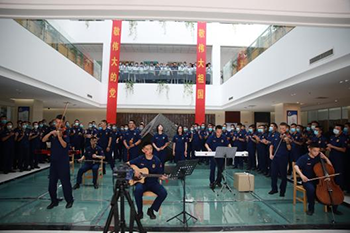 为庆祝72周年国庆,厚植学员爱党爱国情怀,开展党史学习教育,扎实推进“我为群众办实事”实践活动,丰富校园文化生活,展现学员良好精神风貌,构建欢乐祥和的节日氛围,10月1日、3日,学员管理部在校图书馆举办“致敬伟大的祖国”主题音乐快闪活动。闫胜利院长莅临现场观看演出,学员管理部程显峰政委全程参加。