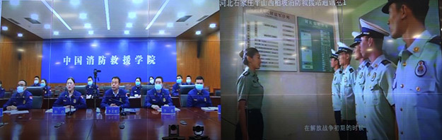 活动中,参与联学共建的党支部首先举行了联学共建协议“云签约”仪式。随后,各党支部依次做了党建经验介绍发言。建筑防火教研室党支部书记、主任杨玲同志从“树牢立德理念、扛起育人使命”“瞄准主责主业、纯洁师德师风”和“忠诚践行初心、争当先锋模范”三个方面详细介绍了站党支部的工作和发展情况。西柏坡消防救援站党支部结合队伍建设和党建工作经验,通过视频形式让参会人员重温了党在西柏坡指导革命取得胜利的光辉历程和召开七届二中全会的重要历史意义,并介绍了党在革命实践中孕育形成的以“两个务必”为核心的西柏坡精神。