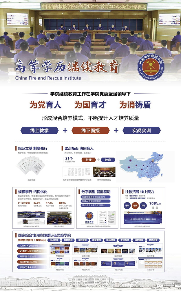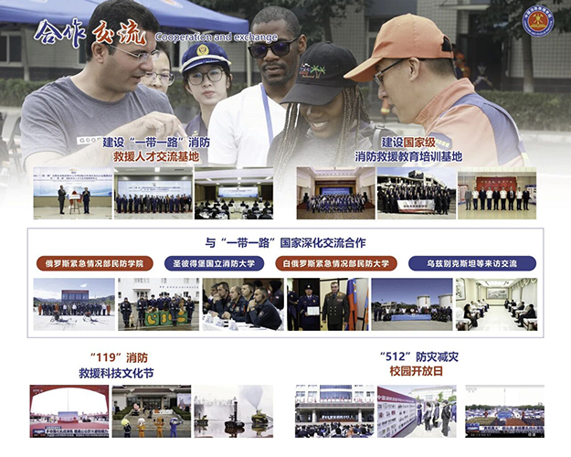 “继续教育与进修培训区”“实训实战成果区”“对外合作成果区”进一步丰富展示维度,展现各级消防救援领导干部、业务骨干培训成效,凸显“校队一体、教战结合”办学特色,以及对外合作交流成果。