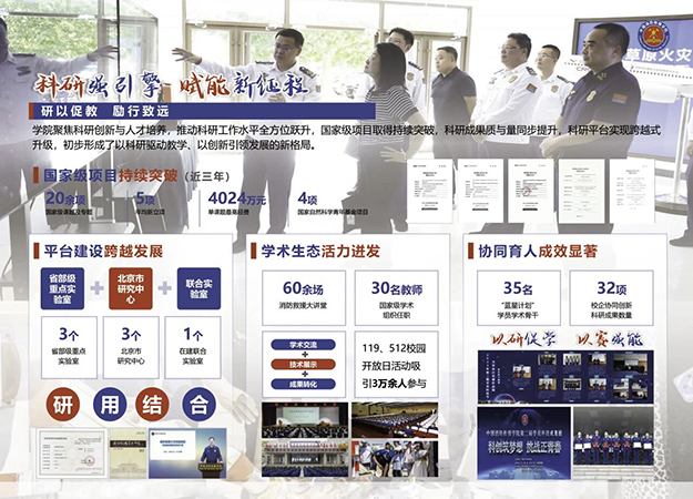 “学科专业与师资力量区”清晰呈现消防救援、应急抢险、政治工作等特色人才培养体系,“名师墙”展示国家级教学名师、行业领军专家的学术背景及研究成果。