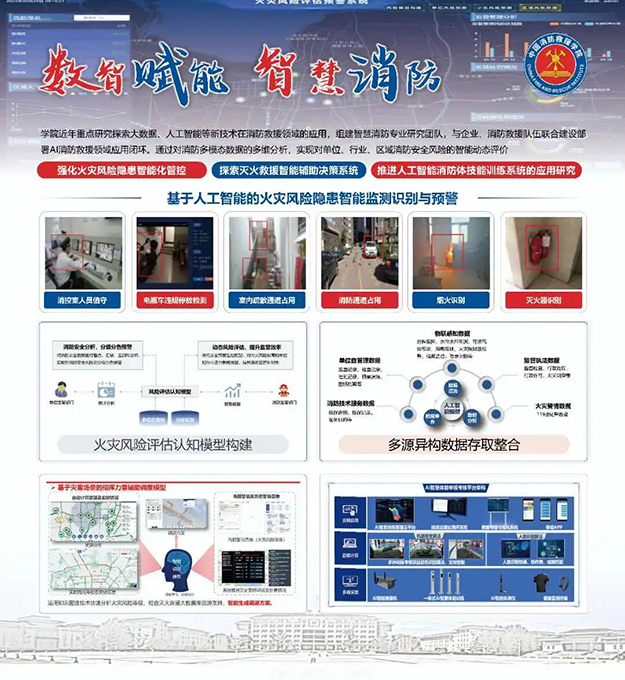 “重大科研平台与创新成果区”突出“数智赋能、智慧消防”科研主线,火灾防治智慧系统、智能救援装备等15件实物展品各具特色,彰显科技硬实力。