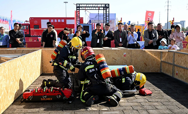 室外演练区亮点频出。建筑火灾扑救科目依托“透明化战场”技术,实时同步火场温度、救援人员位置等数据,学员高效完成火源控制、人员搜救等环节,现场掌声不断;林火火灾扑救科目融合传统方法与“分区供水、多装备协同”新战法,破解林区灭火“供水难”问题;事故救援环节,学员操作新型破拆、顶撑装备,高效实施交通事故救援,获专业人员的高度认可。